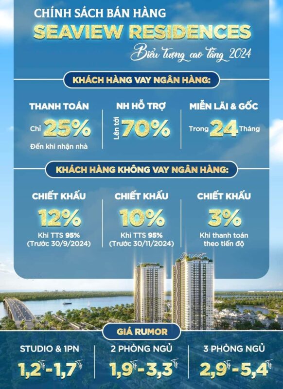 • Về mức giá bán cho các căn chung cư Ecopark Vinh – Giá bán Chung Cư SEAVIEW RESIDENCES: