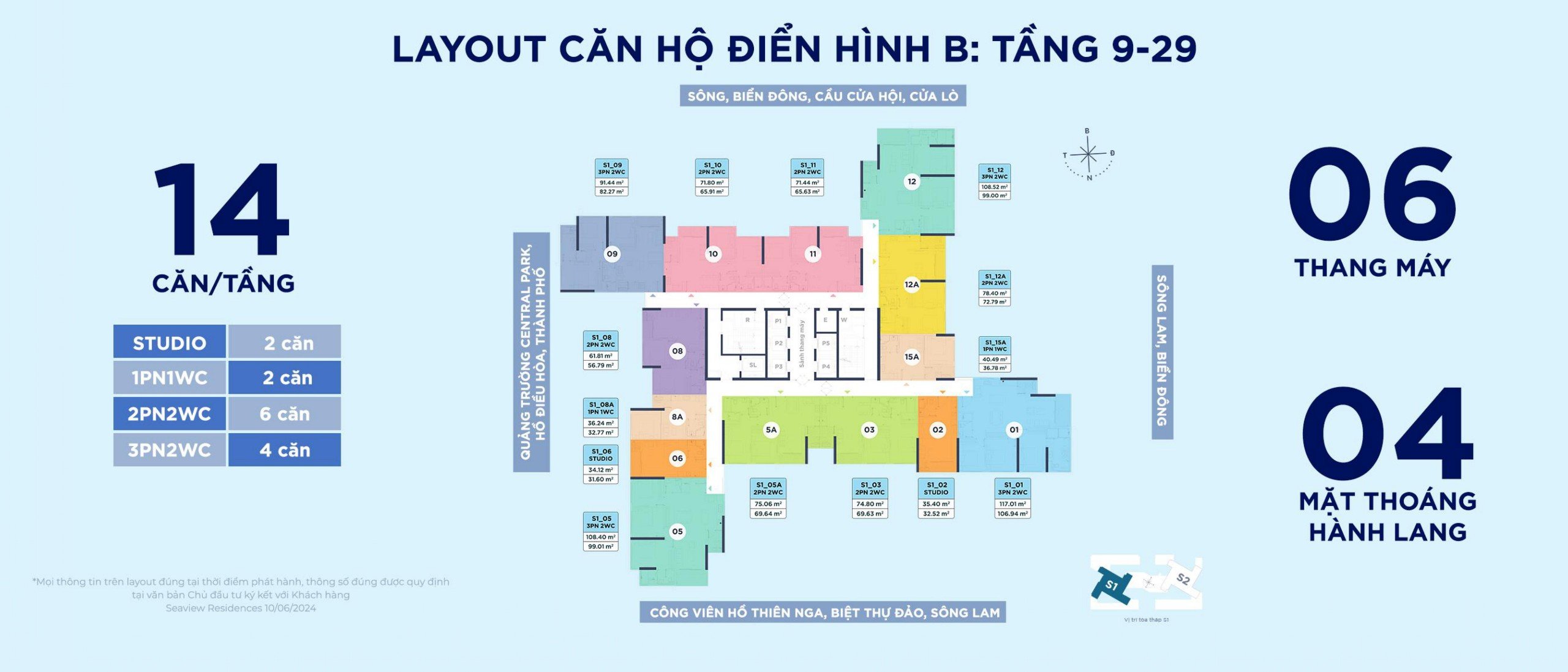 Mặt bằng thiết kế toà S1 từ tầng 9 đến tầng 29 chung cư Seaview Residences – Ecopark Vinh – Eco Central Park